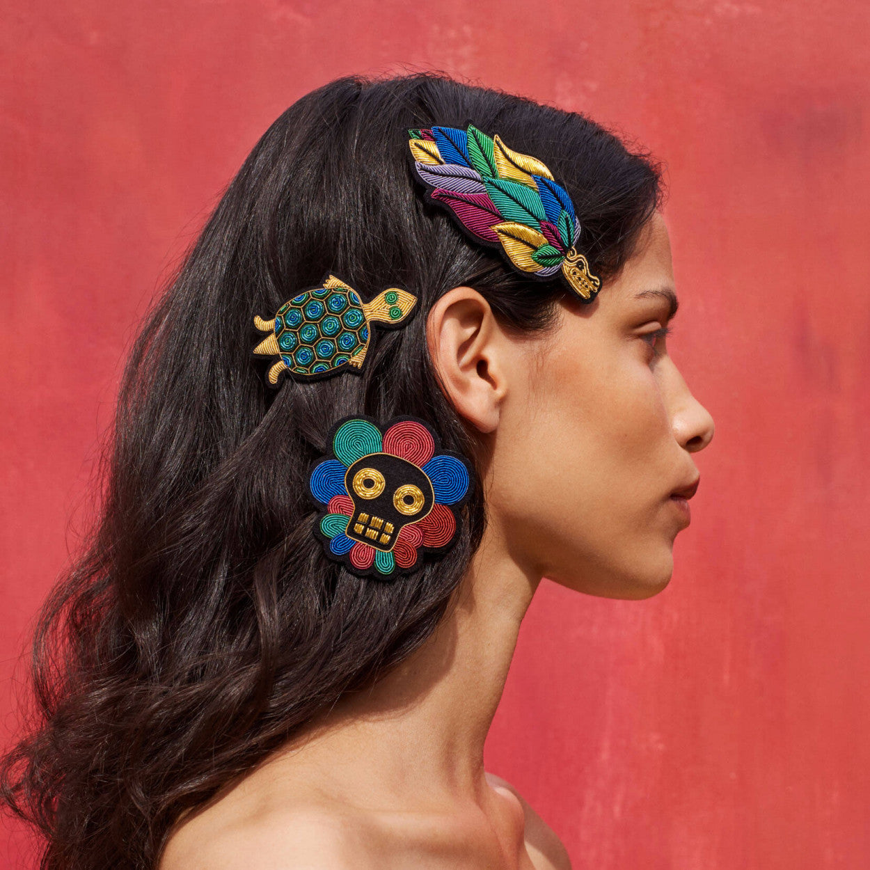 Symbole de sagesse et de longévité, la broche Tortue de Macon et Lesquoy est un accessoire brodé à la main qui allie poésie et raffinement. Avec son allure délicate et artisanale, elle apporte une touche de douceur et d’originalité à vos tenues. À porter sur une chemise, une veste ou un manteau, cette création incarne à la fois élégance intemporelle et savoir-faire d’exception.