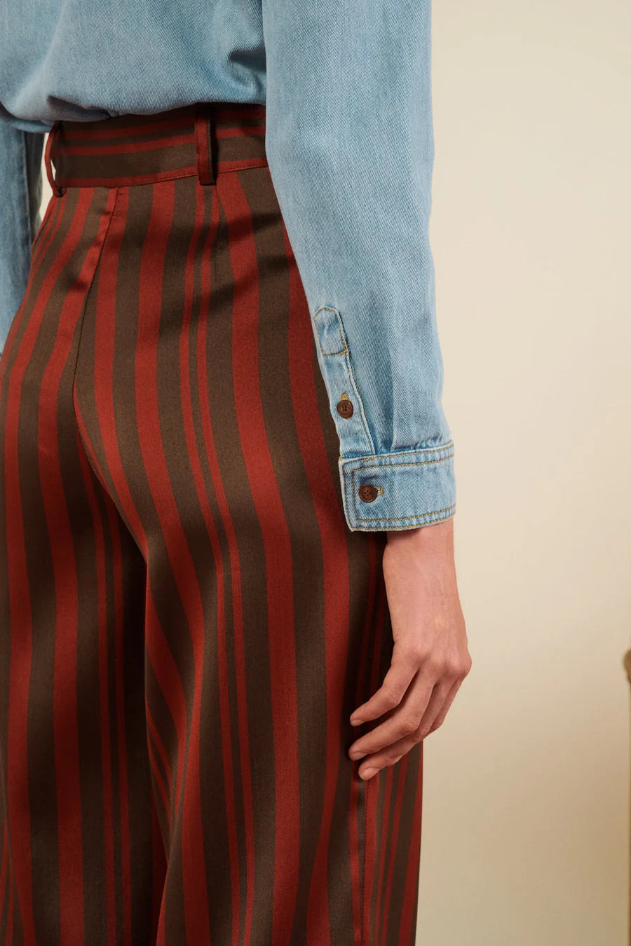 La chemise Fairy de Maria de la Orden revisite un basique avec une touche raffinée. Confectionnée en denim de coton au tombé naturel, elle se distingue par sa cravate intégrée au col, apportant une allure féminine et élégante.