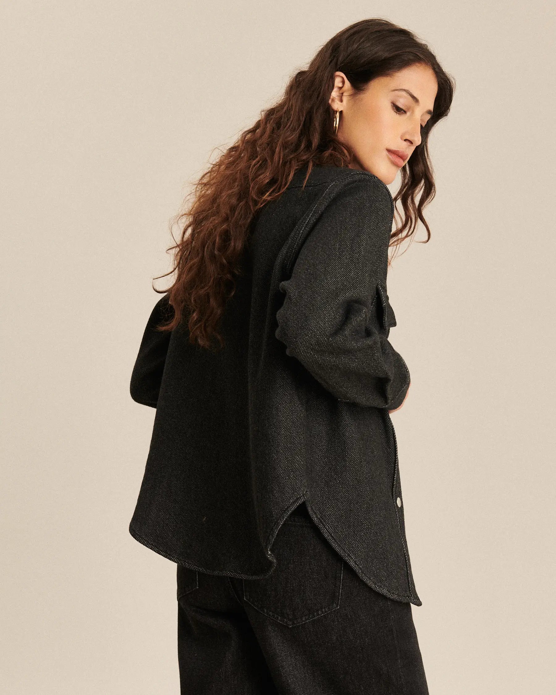 La chemise Dalia Denim Dark Grey revisite l’esprit western avec une allure moderne et élégante. Sa coupe ajustée, son col chemise classique et son bas arrondi structurent la silhouette avec précision, offrant une pièce à la fois intemporelle et contemporaine.