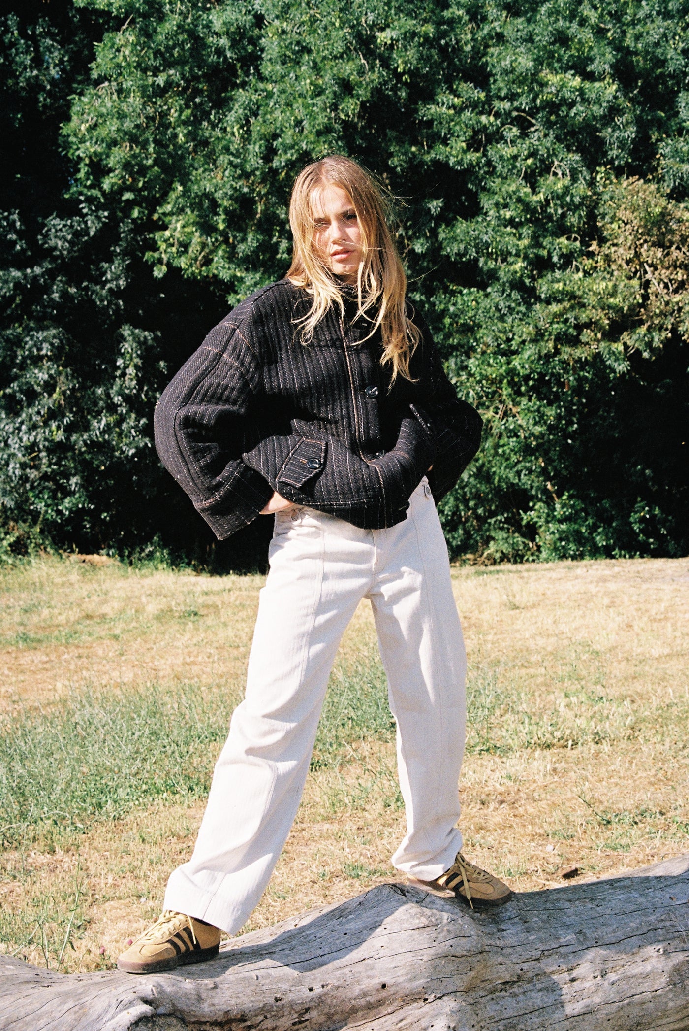 Deux poches pratiques ornées de rabats avec œillets métalliques et une fermeture zippée avec bouton argenté viennent parfaire ce modèle aux détails soignés. Éco-conçu à partir de 65 % coton recyclé et 35 % coton BCI, le pantalon Vico traduit l’engagement de Kerners pour une mode responsable, durable et fabriquée en France.
