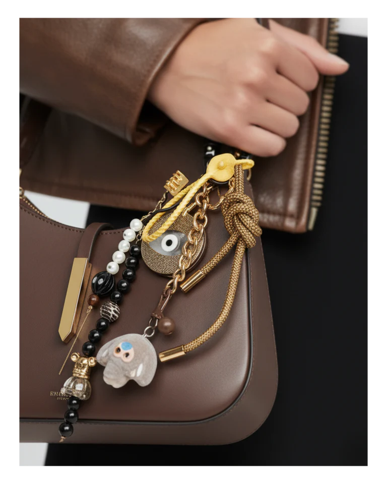 À accrocher à votre sac, trousse ou trousseau de clés, le Sacred Glow devient votre compagnon du quotidien — une touche d’éclat et de sens qui ne quitte jamais votre flow.