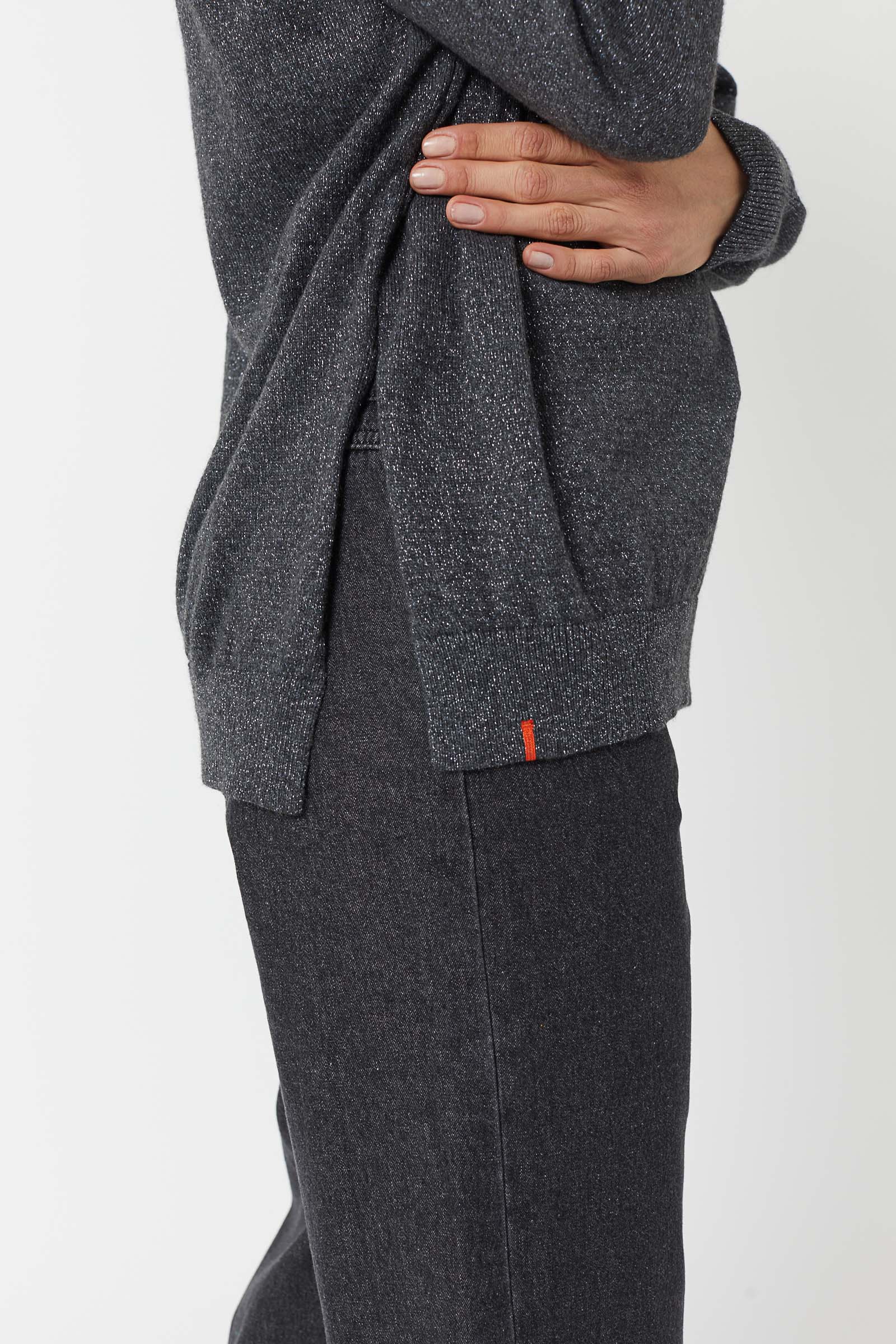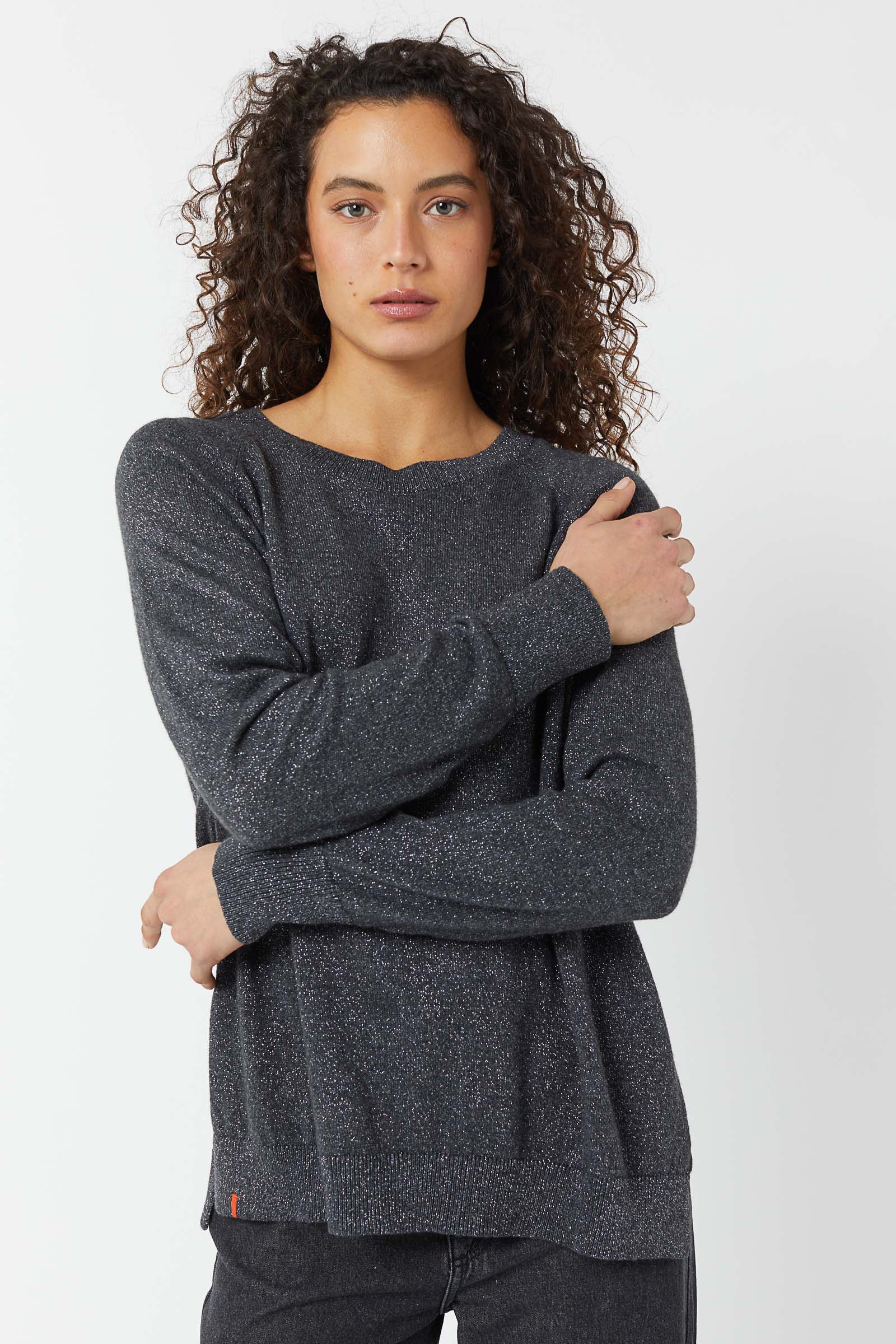 Les fentes latérales discrètes ajoutent une touche de modernité et facilitent le mouvement, tandis que les manches longues légèrement ajustées structurent délicatement la silhouette. Confectionné dans une maille fine composée de cachemire, laine mérinos extra fine, viscose Ecovero et polyamide recyclé, il offre douceur, chaleur légère et durabilité.
