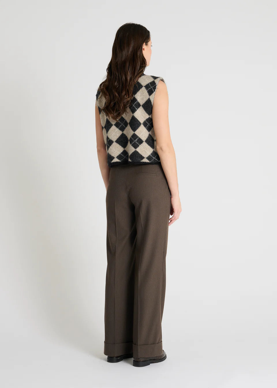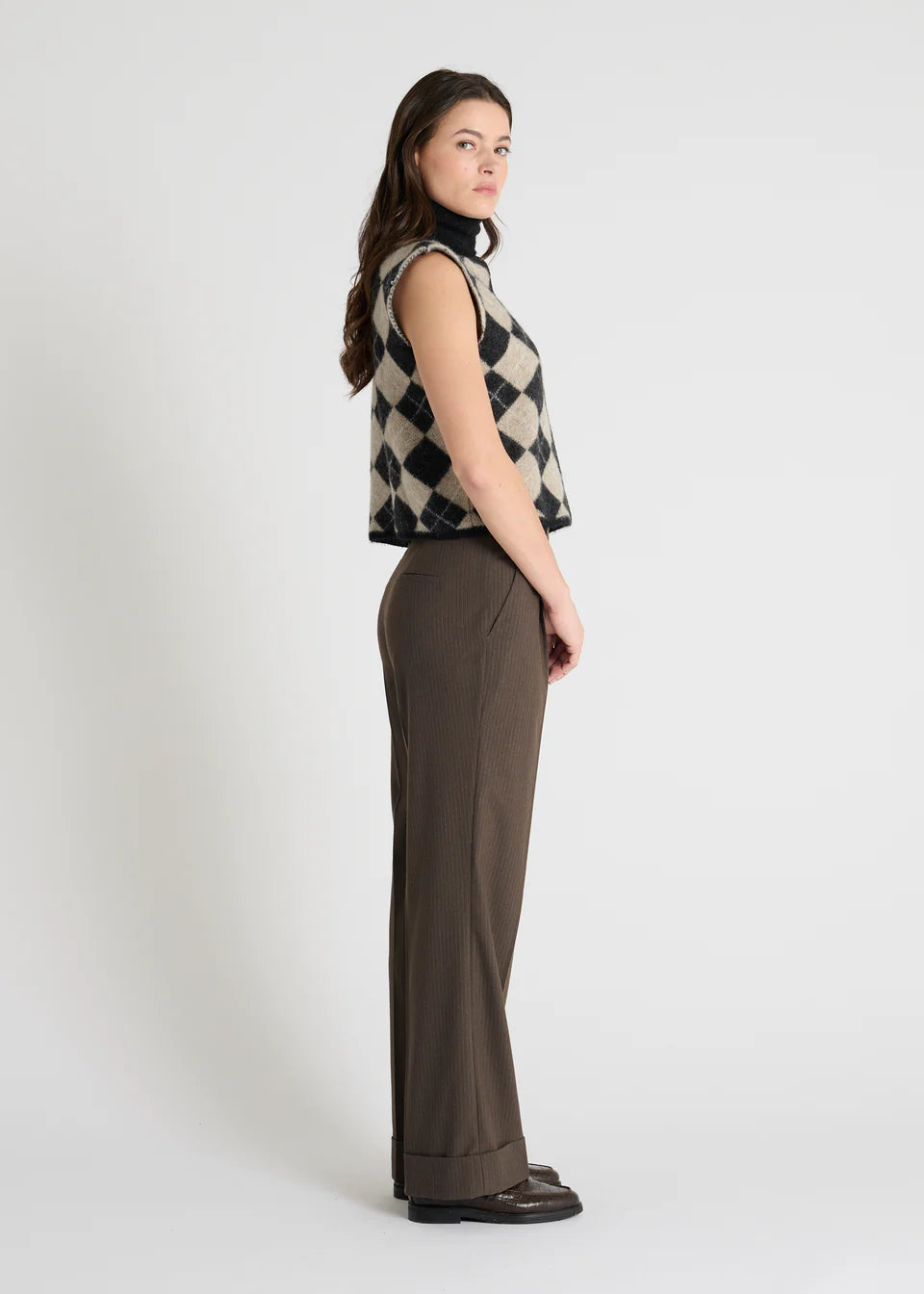 Son col roulé en bord-côte apporte de la tenue et du confort, tandis que les coutures nervures apparentes au milieu devant et au dos viennent souligner son caractère raffiné. Polyvalent, il peut se porter seul pour une allure affirmée, ou superposé sur une chemise pour un look plus habillé et structuré.