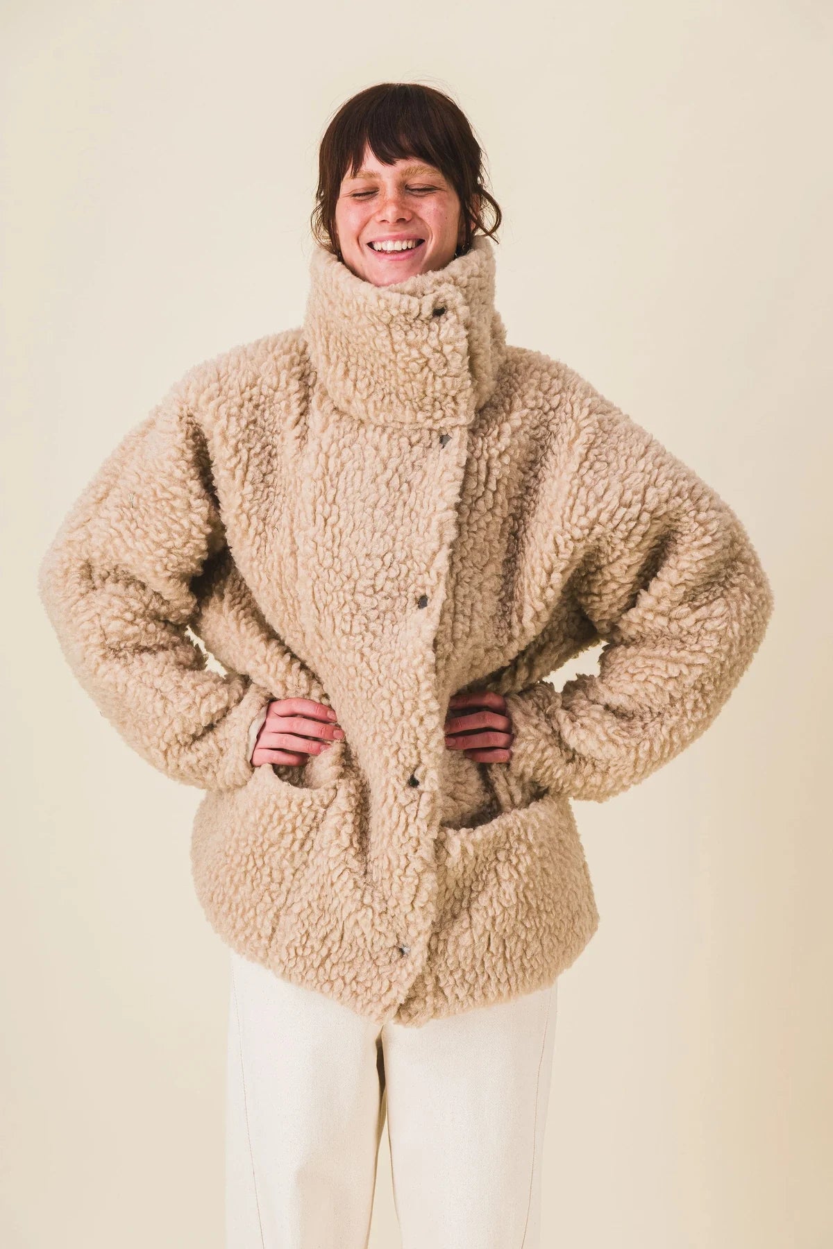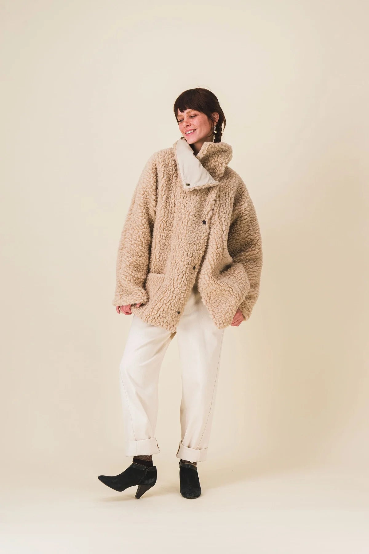 La Veste Neige de SIXSŒURS est une pièce d’hiver à la fois cocooning et élégante. Sa coupe oversize et son col montant enveloppant en font une alliée idéale pour affronter le froid avec style. Confectionnée dans une laine écrue-beige tissée en Italie, cette veste mêle chaleur, douceur et allure contemporaine.